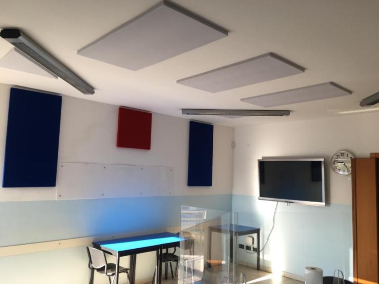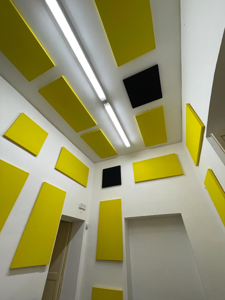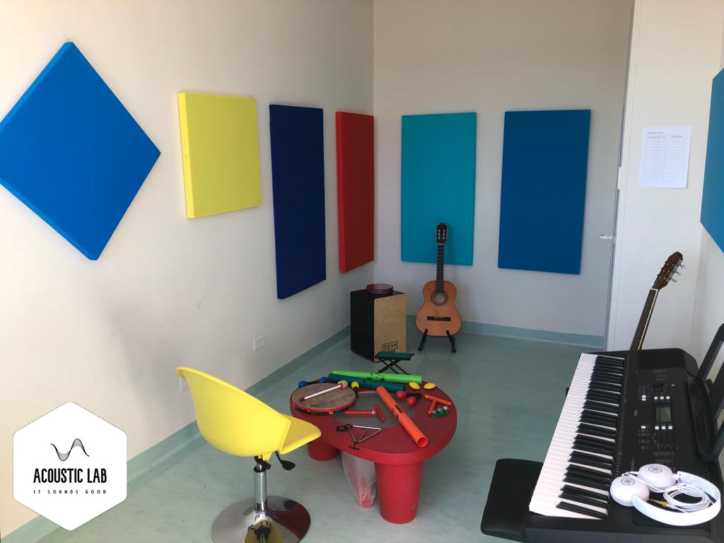 L’installazione di moduli fonoassorbenti a parete alternati a pannelli a soffitto ha come risultato una migliore vivibilità dell’ambiente, favorendo lo sviluppo delle attività musicali e multimediali