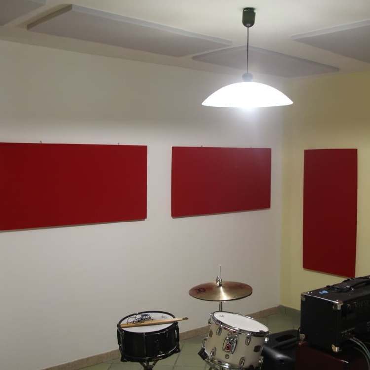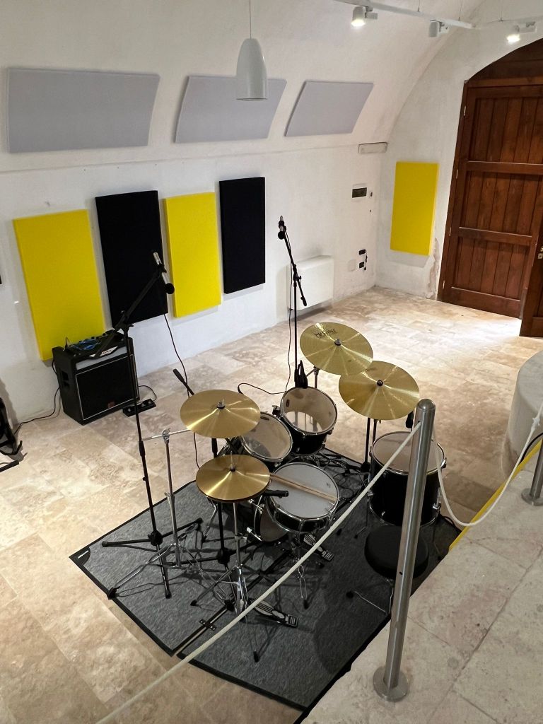 Il trattamento acustico della stanza permette lo studio della batteria acustica, per ascoltare bene il proprio strumento e non dare fastidio ai vicini!