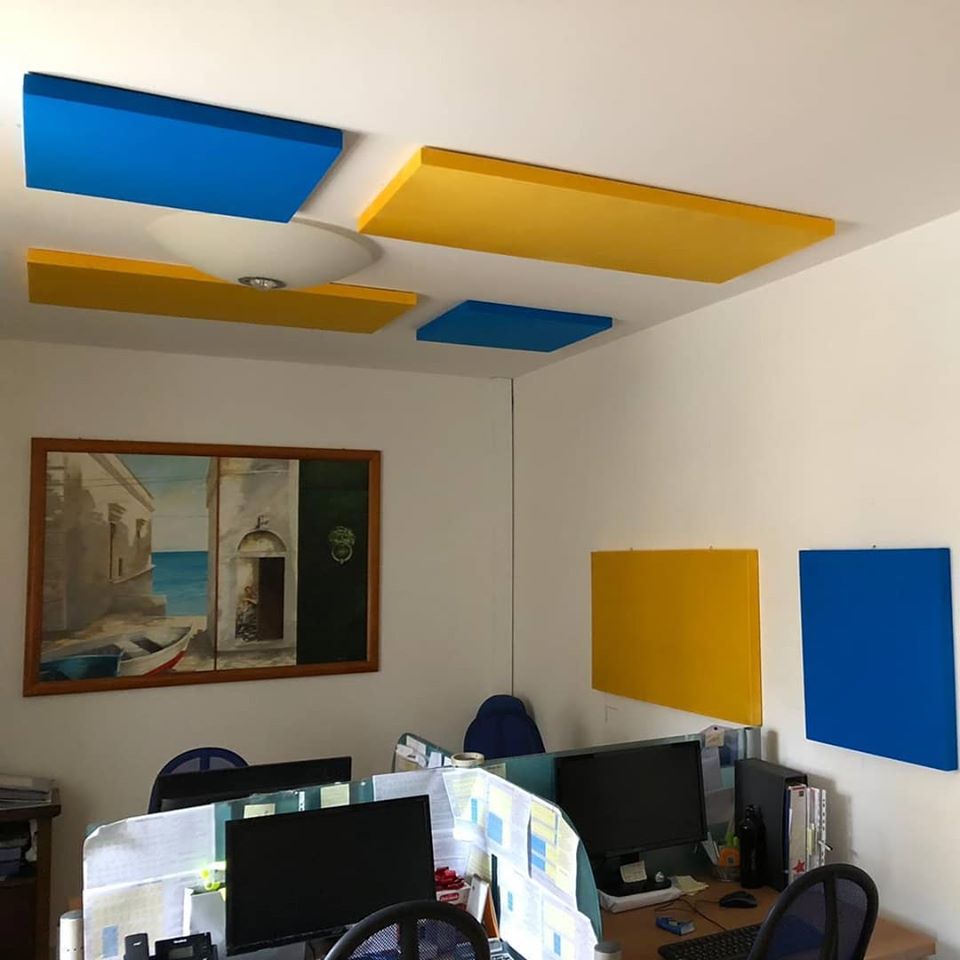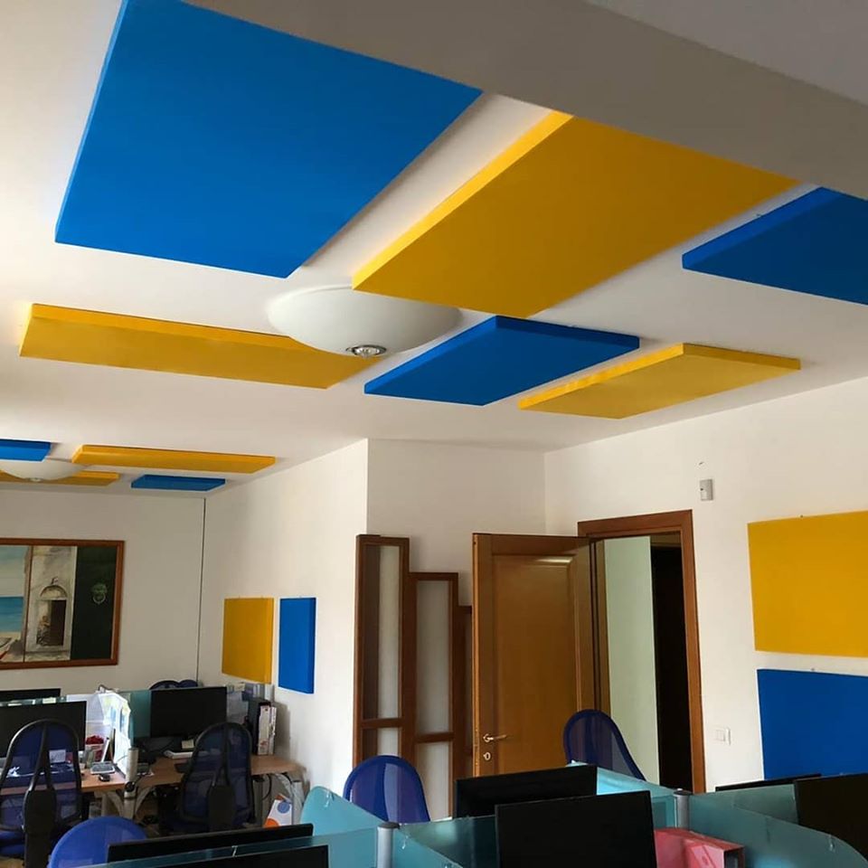 Il trattamento acustico della stanza ha come risultante una migliore qualità professionale del luogo eliminando le interferenze acustiche tra le postazioni di lavoro.