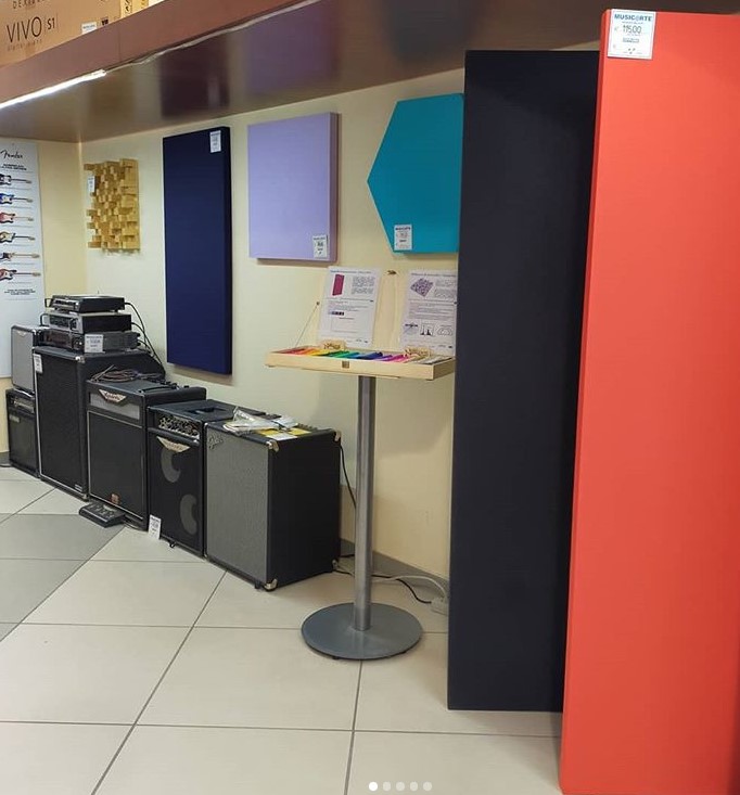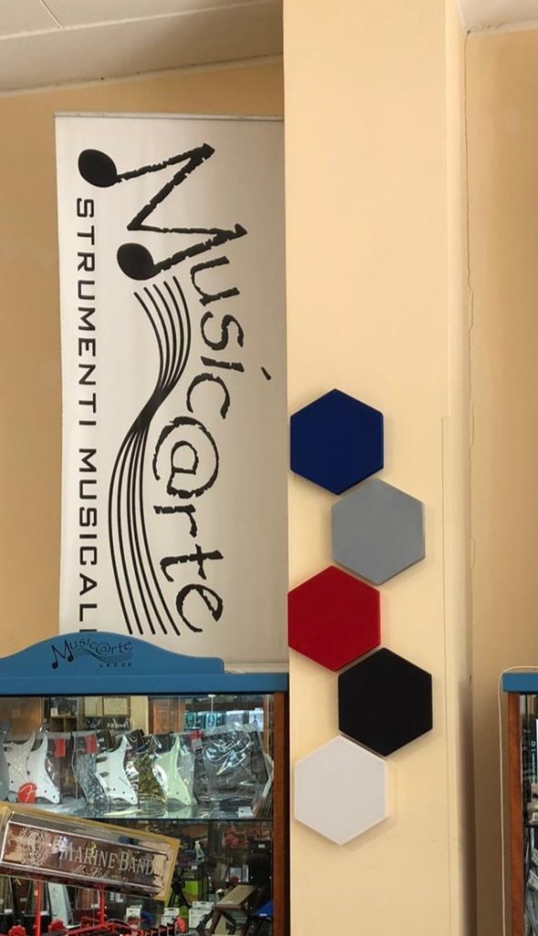 Esposizione, presso Musicarte, negozio di strumenti musicali e audio professionale.