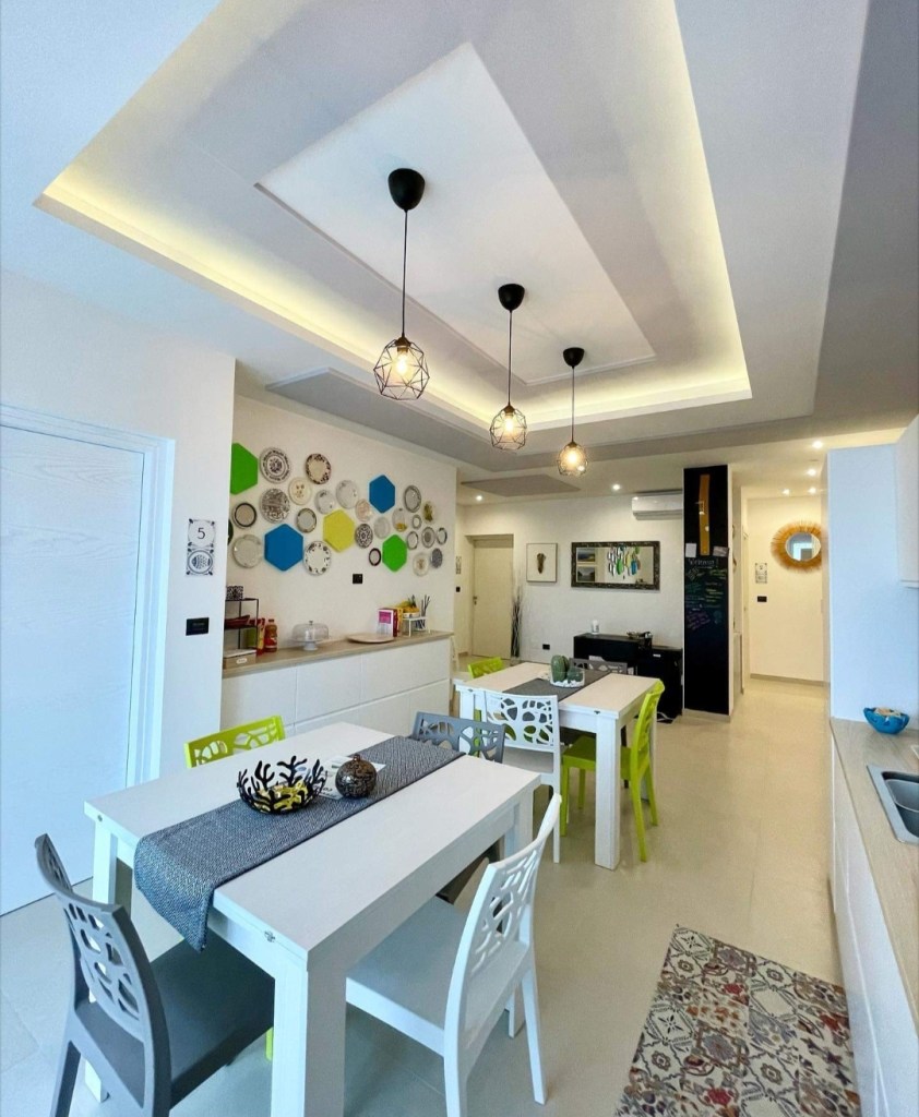 Sala comune di un B&B all’avanguardia, trattato acusticamente su pareti e soffitto. Trattamento fonoisolante con fibre prestanti e atossiche, intra-parete, per un isolamento acustico efficente tra camere.