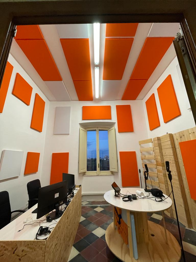 Lo spazio è utilizzato come sala di ripresa e regia di una radio locale; un fantastico ambiente per il parlato, per interviste e piccole esibizioni.