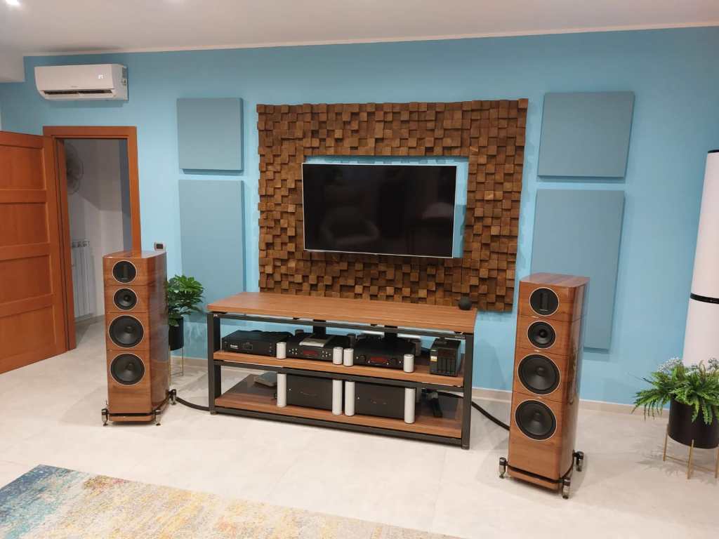La sala è di competenza di una persona amante dell’audiofilia. Lo scopo è quello di migliorare la risposta della stanza senza alterarne il timbro originale della musica d’ascolto.