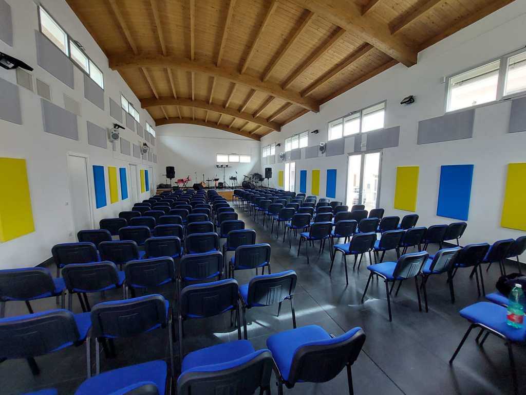La grande sala teatrale del comune di Castri’ è stata trattata acusticamente con i nostri pannelli, oltre a complementi audio per lo svolgimento delle attività ricreative.